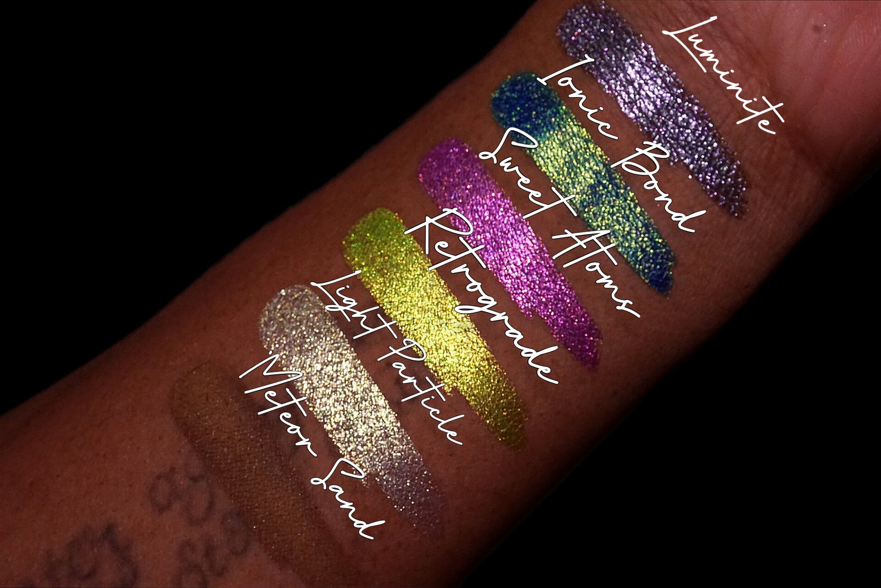 Light Particle is one of the singles from our Space Chemistry palette. It's a light yellow sparkly duochrome with green shifts.