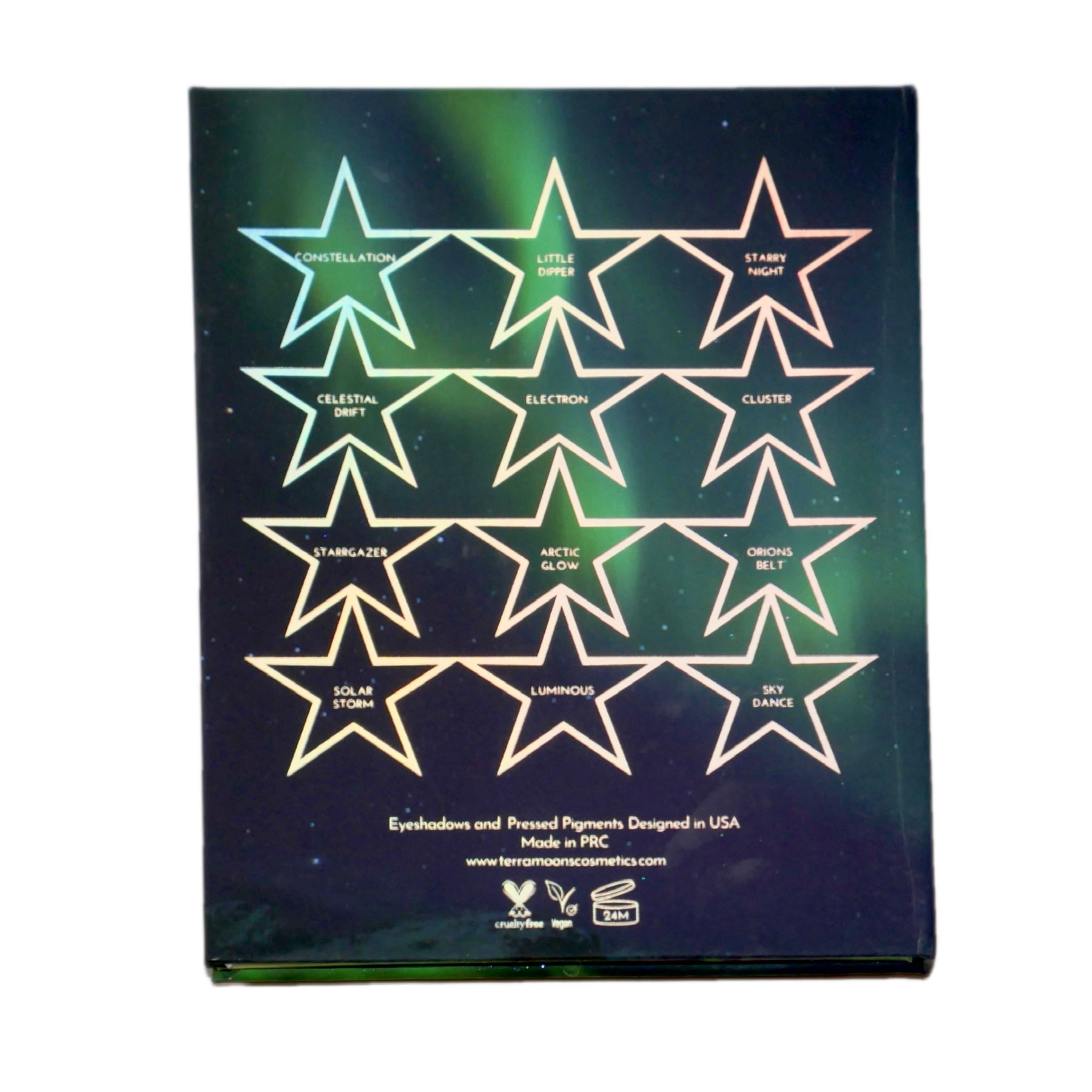 There's a moment when the sky comes alive and when the northern lights begin to move and the whole world goes quiet. Starr Gazing is a 12-pan eyeshadow and pressed pigment palette born from that feeling. The stillness. The awe. The kind of beauty that leaves you breathless and reminds you to take a moment.