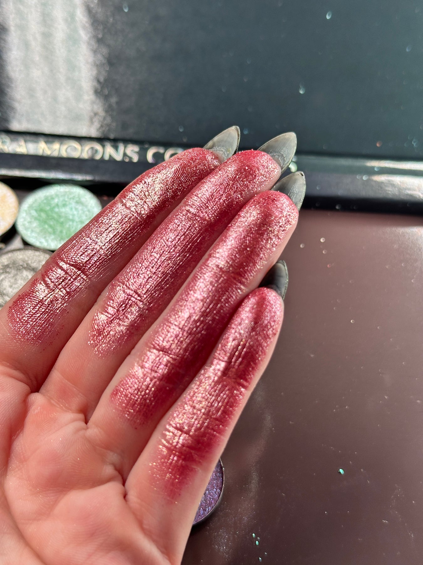 TIPS: Apply with your favorite shadow brushes. Flat and firmer brushes will give the most color payoff. Try using a setting spray to wet your brush, or use a glitter primer for larger particle mica pigments before applying for a more intense finish.