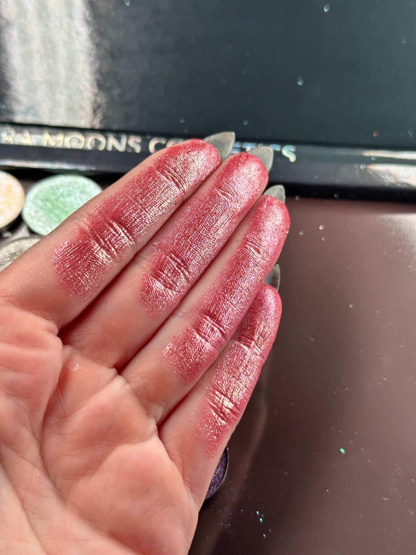 Cherry Bomb is a rose shimmer with silver sparkles.